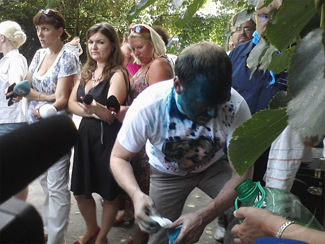 Это уже не первый подобный случай. 13 июля в Власенко уже пытались бросить бутылку с зеленкой, но нападающий промахнулся и попал в журналиста.