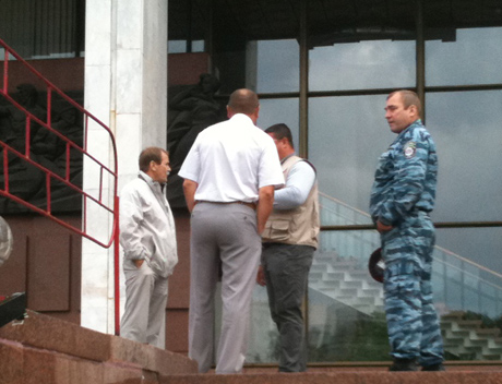 В четверг утром, около 6 часов милиция оттеснила их ниже по ступенькам, поставила ограду и нескольких правоохранителей по периметру.