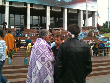 На вопрос, представляют ли они какую-то организацию, они говорят, что пришли под Украинский дом как граждане.