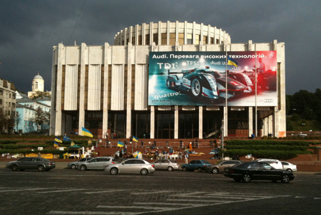 Однако никаких флагов каких-то политических партий под Украинским домом нет.