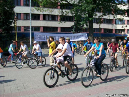 Как сообщает Радио Свобода, почти 70 велосипедистов проехали по улицам Независимости - Ивасюка - Волчинецкая - Привокзальная - Грюнвальдская - Грушевского.