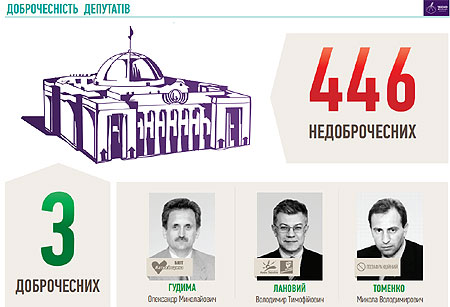 Согласно исследованию, фильтры критериев добропорядочности прошли депутаты Николай Томенко, Александр Гудыма (БЮТ) и Владимир Лановой (фракция НУНС, стал депутатом лишь в июне 2012 года).