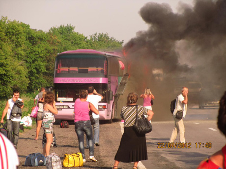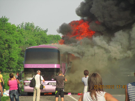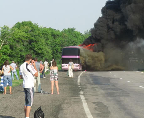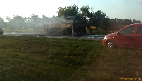 "Полностью сгорел автобус "Ковшаровка- Харьков". Автобус не доехал до Харькова несколько километров. Ехал с семой в этом автобусе. Слава Богу, жертв нет. Автобус был переполнен, водитель подбирал людей на "каждом шагу". Когда водителю сказали, что горит и полный салон дыма, оно забыло открыть задние двери. Потом двери открыли, автобус сгорел за 5 минут", - написал один из пассажиров на "ХарьковФорум".