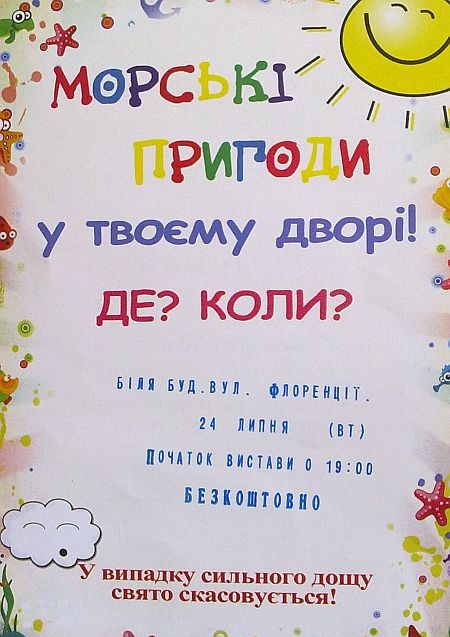 Во вторник людям раздавали листовки, в которых сообщается о проведении вечером праздника, в программе которого "детские развлечения - игры, конкурсы, шоу-представление от мим-театра".