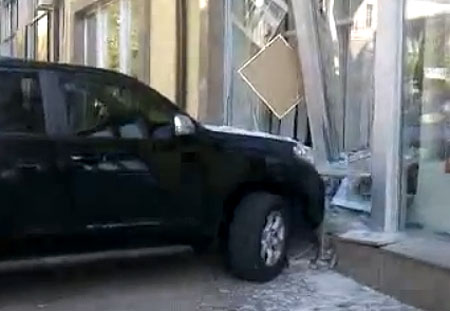 Девушка на джипе въехала в витрину в центре Киева