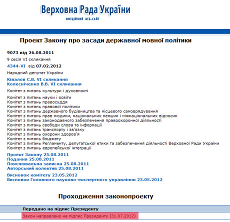 Как известно, Верховная Рада 3 июля приняла закон "Об основах государственной языковой политики", значительно расширяющий сферу применения русского языка. Авторы законопроекта – депутаты фракции Партии регионов Вадим Колесниченко и Сергей Кивалов.