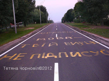 Как известно, Чорновил была задержана в среду утром за то, что перед Межигорьем на асфальте написала большими буквами "Янукович, язык - твой приговор. Не подписывай!".