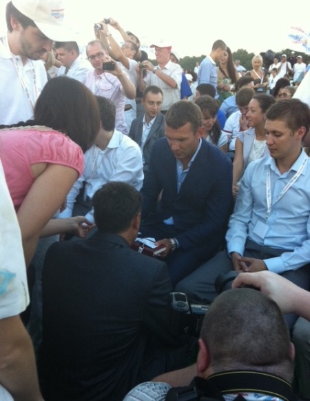 Перед съездом журналисты пытались взять комментарий у Шевченко, но неизвестный толстяк в розовой футболке отогнал их, заявив, что сейчас здесь будут идти главные участники съезда.