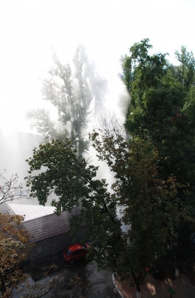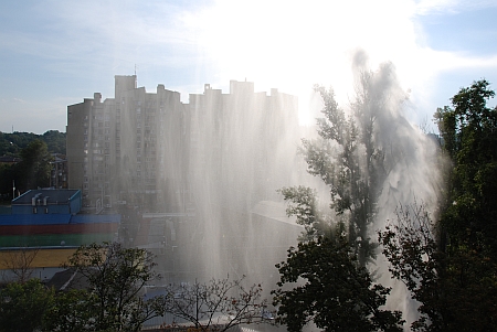В центре Киева посреди детской площадки из-под земли вдруг забил фонтан, который достигал высоты восьмого этажа.