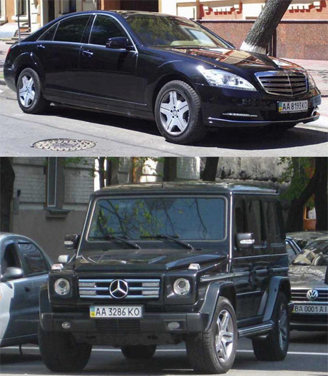 "Итак: 1. Mercedes S600 с госномерами АА8193КО зарегистрирован на Калетника Николая Николаевича, 1943 г.р. 2. Mercedes G55 госномерами АА3286КО зарегистрирован на некоего Сальника Сергея Николаевича, 1979 г.р.", - сообщил журналист.