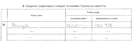 Так, согласно документу, Азаров-младший в Австрии заработал 96 000 евро, что составляет 942 586 гривен.