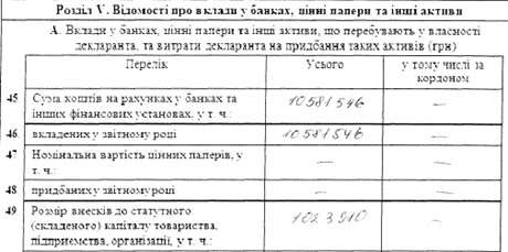 На счетах в банках у Донец 10 миллионов 581 тысяча 546 гривен, которые были вложены в 2011 году.