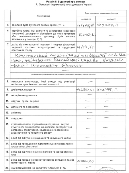 Из них 867 тысячи - зарплата, а 29 тысяч - доход от преподавательской деятельности.