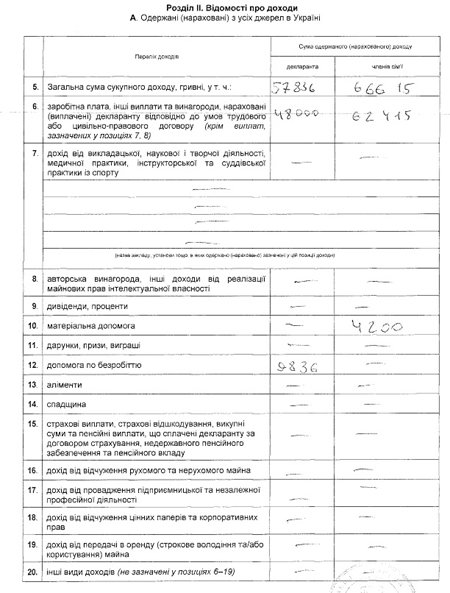 В тоже время, еще один кандидат от "Удара" Розенко получил за 2011 год 57, 836 тысяч гривен. Из них почти 10 тысяч - материальная помощь по безработице.