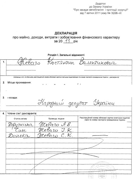 В 2012 году Жеваго потратил 30 373 гривны на содержание имущества, его семье содержание имущества обошлось в 19 330 гривен.
