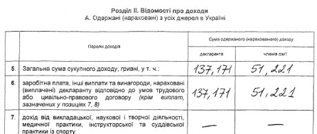 Члены его семьи в 2011 году заработали 51 тисячу 221 гривню.