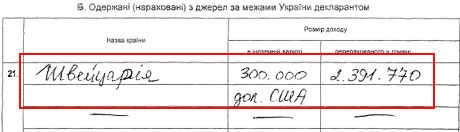 Так, в Швейцарии в 2011 году он заработал 300 тысяч долларов, что составляет 2 миллиона 391 тисячу 770 гривен.