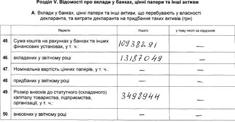 На счетах у футболиста 10 938 291 гривен, в этом году он вложил 13 187 049 гривен. Размер взносов в уставный капитал предприятия составил 3 498 944 гривен.