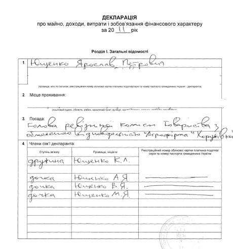 Размер взносов в уставной капитал предприятия Ющенко составляет 55 тысяч 180 гривен, его семьи – 50 тысяч.