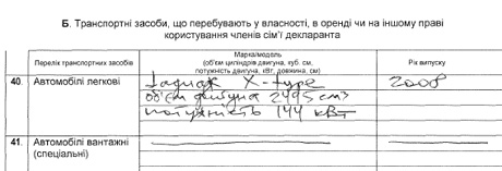 Ющенко владеет автомобилем Toyota Land Cruser, а семья машиной Jaguar X-type.