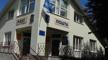 Так в городе Дворична, Харьковской области на здании "Укрпочта" вместо государственного флага вывешен флаг Партии регионов.