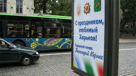 В частности, по пути следования кортежа Януковича убрана любая политическая реклама кроме поздравлений Януковича и Кернеса, предвыборной агитации Партии регионов и коммунистов.