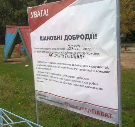 Об этом свидетельствует банер с его именем, сообщат читатель "Украинской правды".
