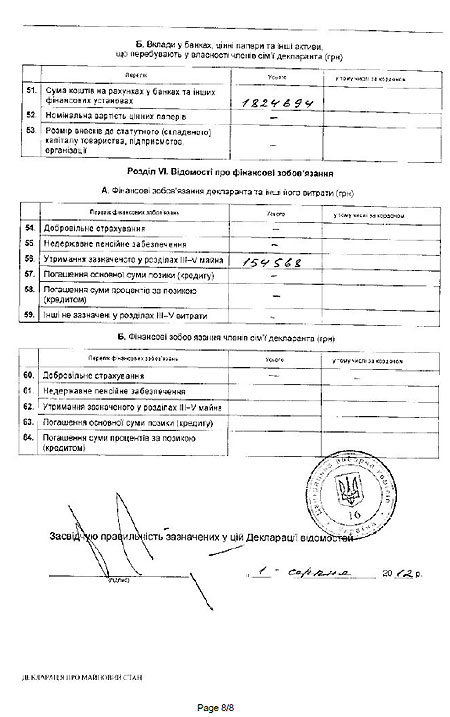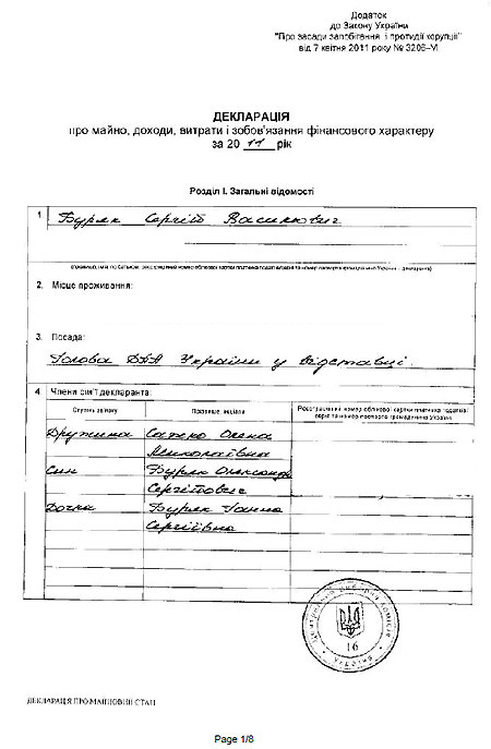 Совокупный доход Буряка за прошлый год составил 32 миллиона 643 тысячи 442 гривны (из них зарплата - 76 961 гривен), членов его семьи - 201 тысяча 207 гривен (зарплата - 27 156 гривен).
