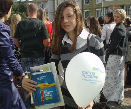 Кандидаты в депутаты от "Партии регионов" использовали праздник 1 сентября в Киеве и области для собственного пиара.