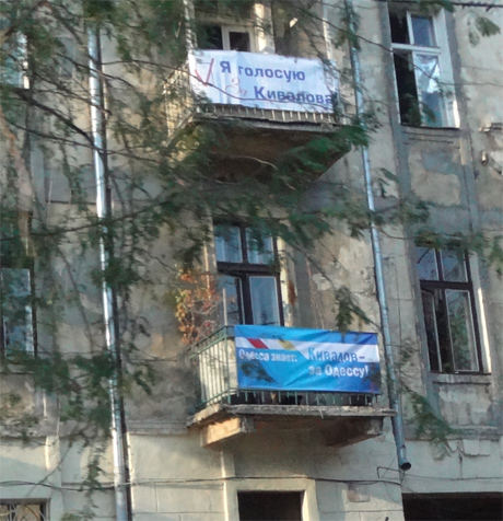 В Одессе за одну ночь на фасадах многих домов появились растяжки с поддержкой "регионала" и автора языкового закона Сергея Кивалова.