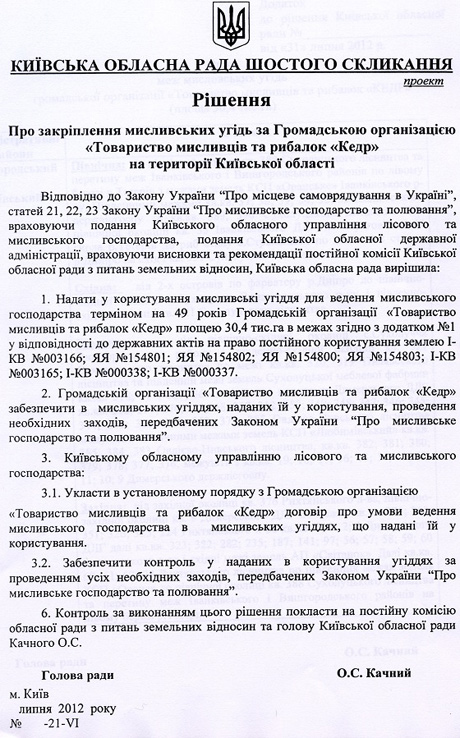 30 тысяч га Днепровско-Тетеревского лесхоза отдали в аренду на 49 лет "Обществу охотников и рыболовов "Кедр", которое связывают с Виктором Януковичем.