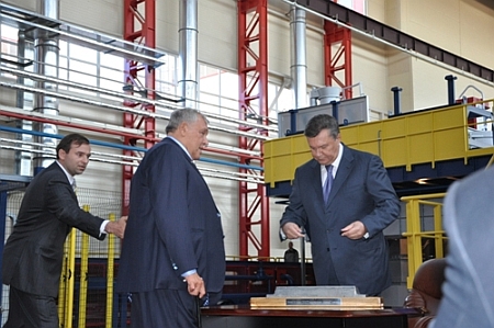 В ходе открытия нового завода президент Виктор Янукович поставил свою подпись на "бракованном" слитке свинца, полученного в результате утилизации.