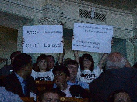 Как известно, во время выступления президента Виктора Януковича на всемирном газетном конгрессе журналисты "Стоп цензуре" устроили акцию - они стояли напротив президента, держа плакаты против цензуры.