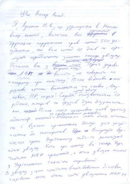 В связи с этим, Луценко требует от Лутковской принять меры для неукоснительного выполнения ст. 110 Уголовно-исполнительного кодекса о праве осужденных на неограниченную телефонную связь.