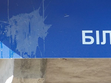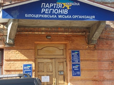 В Белой Церкви неизвестные забросали яйцами штаб Партии регионов.