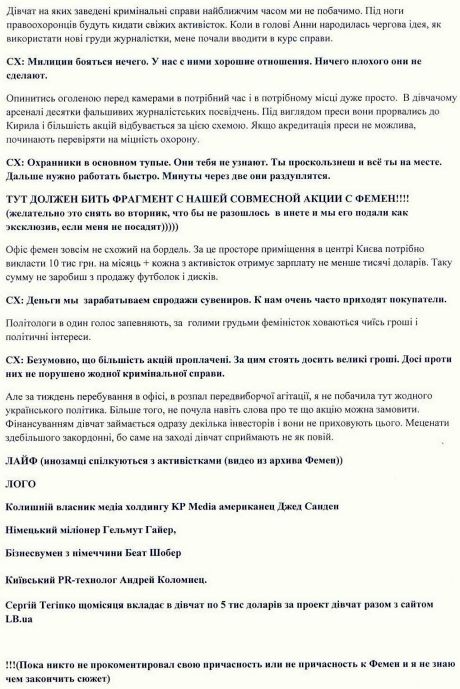 7. FEMEN никогда не скрывали, что 4 организатора движения получают материальную помощь от организации, порядок сумм составляет от 4800 до 8000 гривен.
