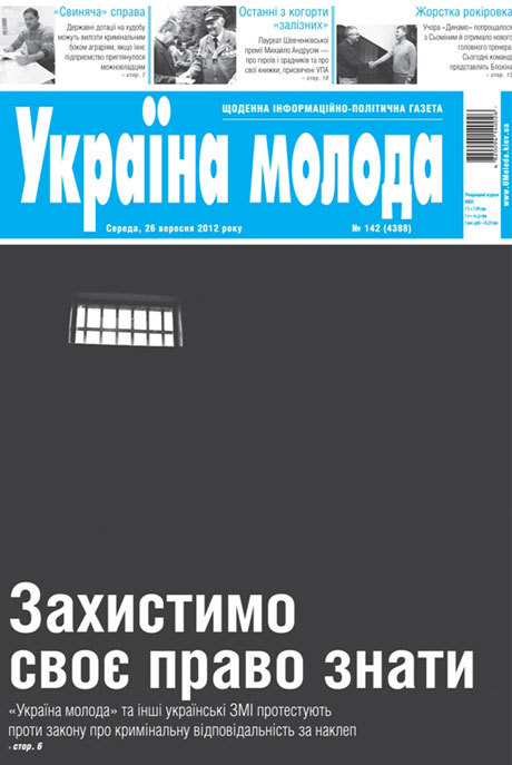 27 сентября все эти издания выйдут с белыми первыми полосами. В свою очередь "Украина молодая" в знак протеста выйдет с черной полосой.