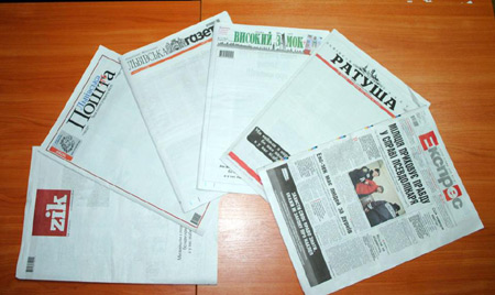 В пятницу ряд львовских изданий вышел в печать с белыми первыми полосами в знак протеста против принятия законопроекта о криминализации клеветы.