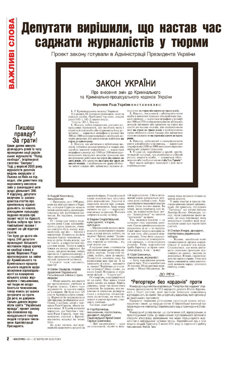 "Во-вторых, на этой неделе мы разместили на первой полосе газеты специальный баннер акции, в номере также опубликовано интервью с Семеном Глузманом, где он рассказывает как лично стал жертвой действия закона о клевете. В-третьих, с первого дня акции специальный баннер размещен на главной странице сайта "Экспресса", - заявил Починок.