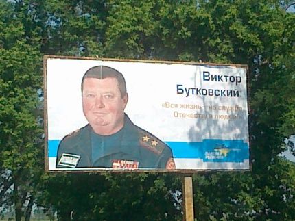 По их данным, генерал-лейтенант Бутковский использует подчиненных МЧСников и пожарные машины для установления билборда с его изображением.