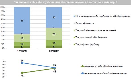 Наиболее активными болельщиками остаются молодежь, жители городов. На западе значительно больше интересуются футболом, чем на юге. Регион, который не принимал матчи Евро, меньше всего пополнил ряды украинских футбольных болельщиков.