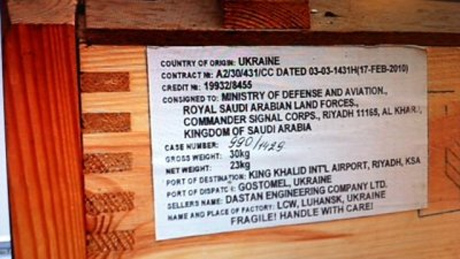 Корреспондент видел три небольших ящика с военным грузом, отправленные из Украины в Саудовскую Аравию, которые оказались на базе сирийских повстанцев в городе Алеппо.