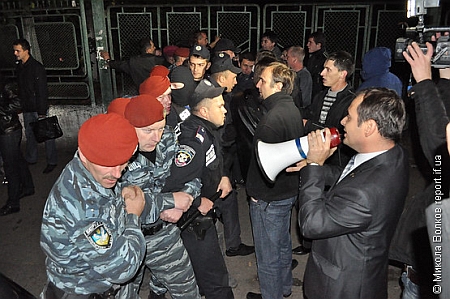 "Свобода" перекрыла улицу своими агитационными палатками. Депутаты пытались прорвать ряды сильовиков штурмом, в ответ их опрыскали газом. Пострадали также журналисты.