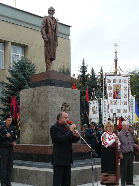 Кандидат в народные депутаты в 125 избирательном округе, первый заместитель НАК "Нафтогаз-Украина" Андрей Лопушанский накануне выборов дарит памятники Степану Бандере.