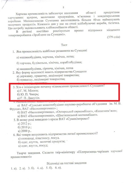 Детям 9-10 лет предлагают прослушать текст о промышленности (!) Сумщины. Далее по этому тексту дети проходили аудирование - отвечали на вопросы.