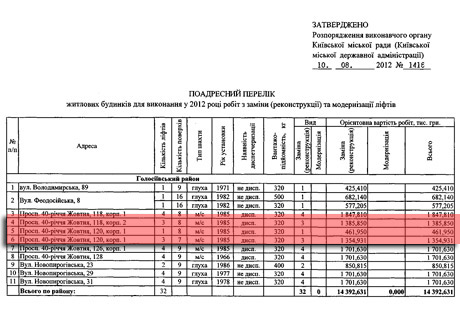 Однако все эти адреса есть в распоряжении Киевской администрации о выделении средств из бюджета на ремонт подъездов.