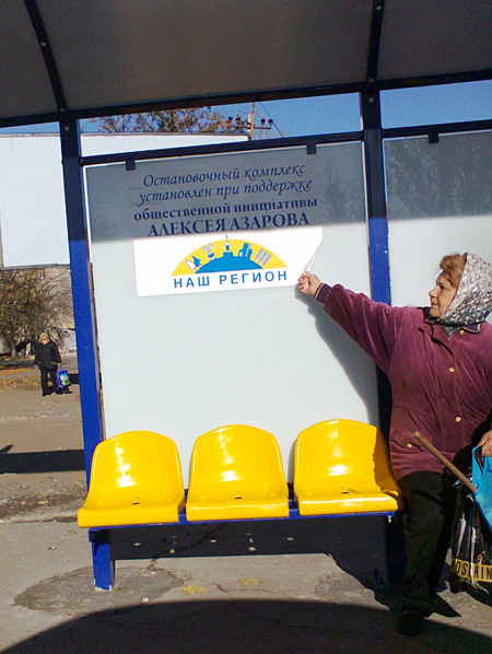 Также логотипы организации "Наш регион" висят на остановках пассажирского транспорта, сообщают "Новости Донбасса".