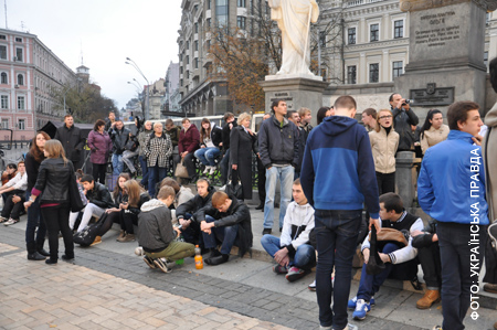 В Киеве за участие в праздничном митинге на Михайловской площади, организованном Партией регионов, студентам обещали заплатить по 100 гривен.