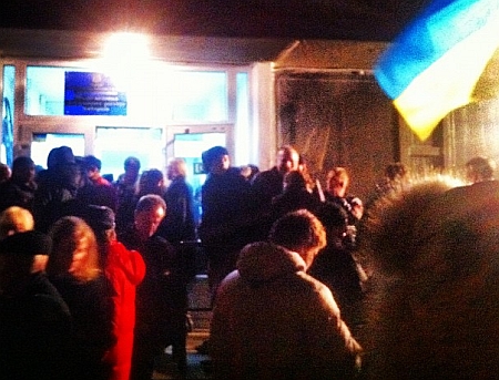 В округе 215 между толпой, собравшейся под ОИК, и бойцами "Беркута" произошла небольшая стычка.