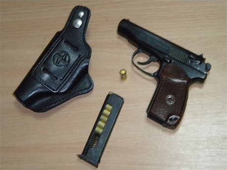 Правоохоранители вывели молодого человека из зала и изъяли у него травматический пистолет. Данный человек имело разрешение на ношение "травматику". Милиционеры начали осмотр и составление протокола.